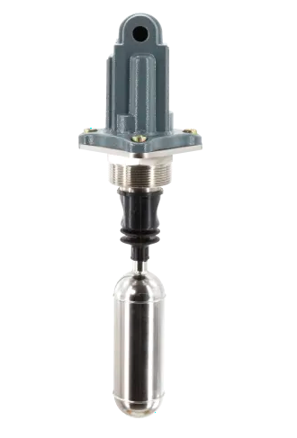 浮球液位開關(guān)。利用浮力原理。浮子的運動被傳遞到一個磁鐵上,該磁鐵切換一個信號微動開關(guān)。浮子和外殼由一個密封的不銹鋼屏障隔開。操作時不需要電源。